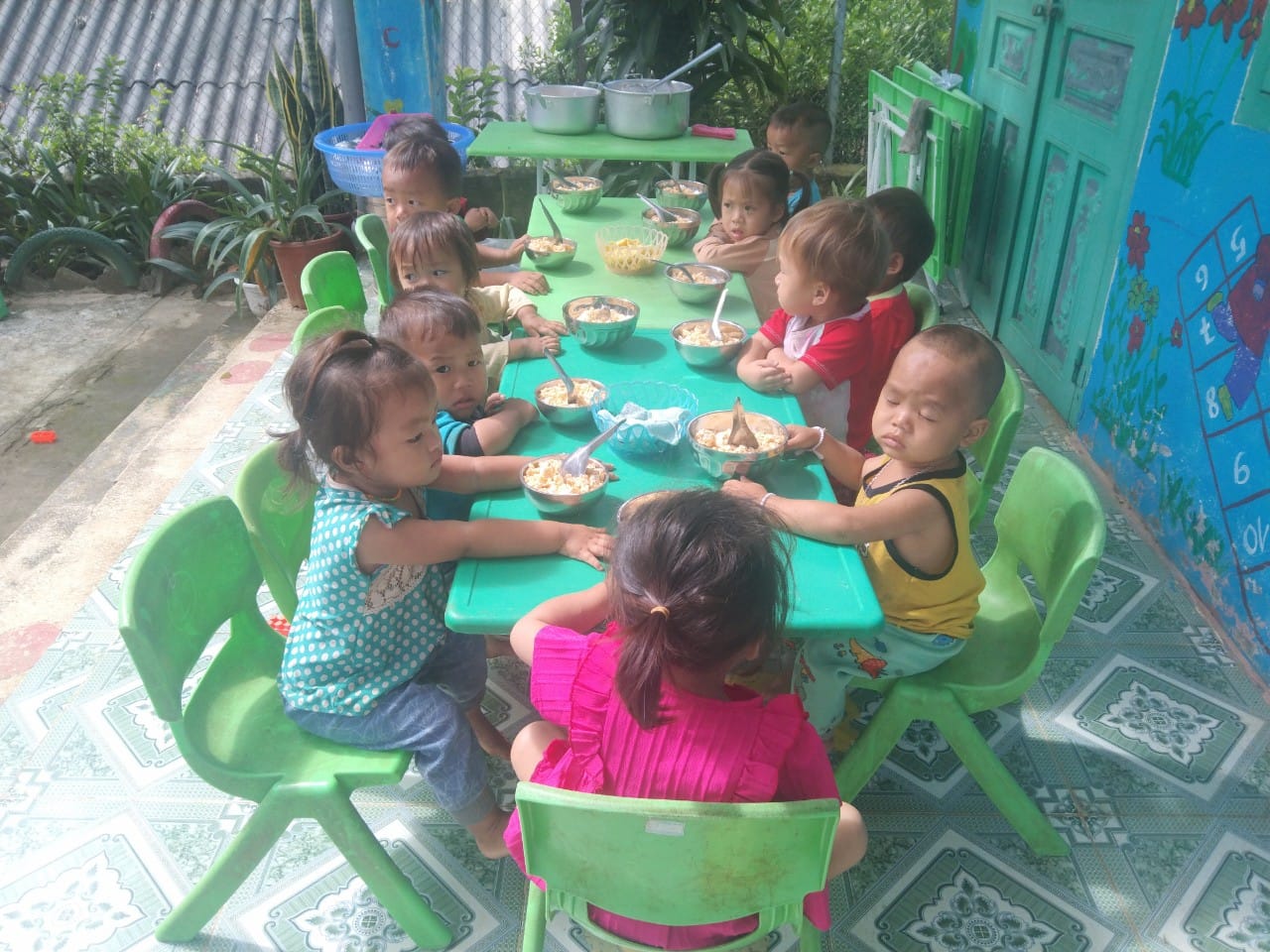 Khi bé đến trường cô giáo cũng là người mẹ hiền thứ hai của bé không những dạy bảo bé những điều hay lẽ phải mà cô còn chăm lo cho bé từ bữa ăn đến giấc ngủ.Với mỗi bữa ăn cô cũng đặc biệt chú ý tới dinh dưỡng của trẻ và khẩu phần ăn làm sao cho trẻ ăn hết xuất. Từ những ánh mắt thích thú, hào hứng khi ăn cơm cũng làm cho cô thấy vui biết bao trong một ngày làm việc